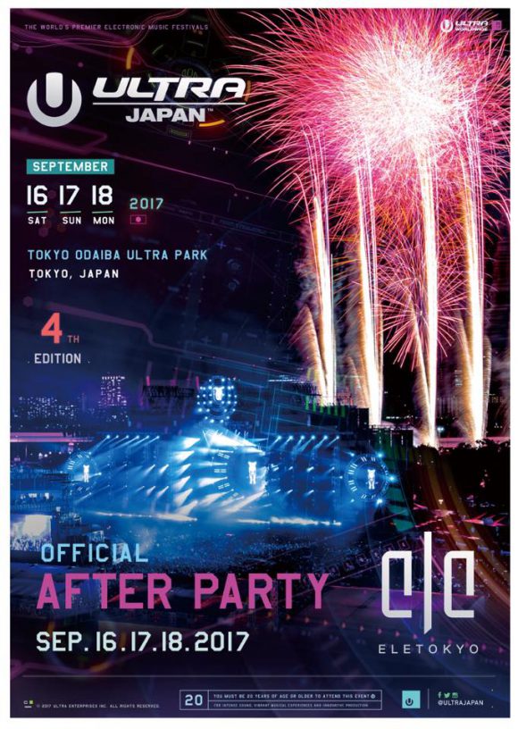 2017年9月16日(土)17日(日)18日(月・祝)の3日間、東京お台場特設会場にて行われるULTRA JAPAN 2017のオフィシャルアフターパーティーがELE TOKYOで開催決定しました!ELE TOKYOでは9月1日(金)~9月30日(土)の約1ヶ月間にわたり「ELE TOKYO 3rd Anniversary... -