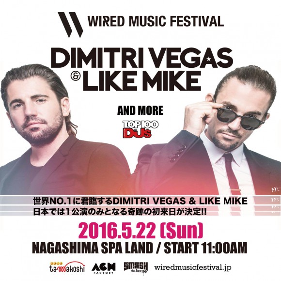 2016年5月22日(日)に三重県桑名市のナガシマスパーランドで開催されるWIRED MUSIC FESTIVAL 2016にDJ MAG世界ランキング1位のDimitri Vegas & Like Mike(ディミトリ・ヴェガス&ライク・マイク)の初来日が決定! [adsense] WMF2016TEASER 公式サイ...