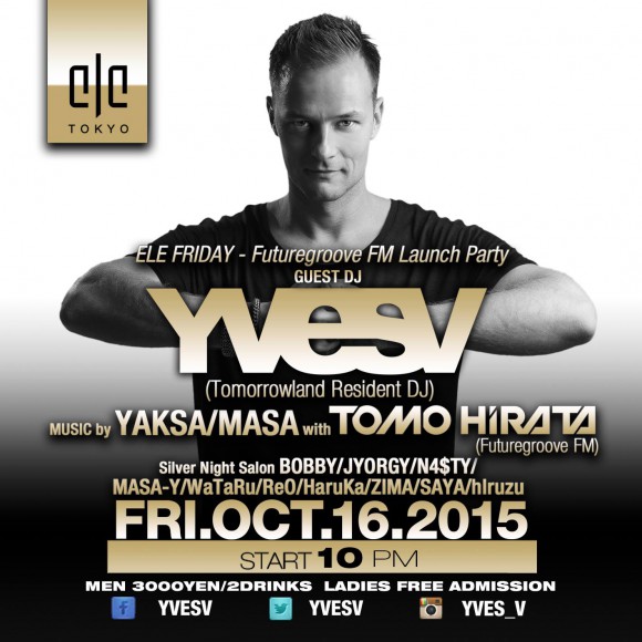 TomorrowlandのレジデントDJとして知られベルギーを拠点に活躍するYVES V(イヴ・ヴィー)が10月16日(金)ELE TOKYOに来日決定!「DJ MAG TOP 100 DJs 2014」55位にもランクインするYVES Vは、Don Diabloとの「King Cobra」Sidney Samson「Magic」といっ...