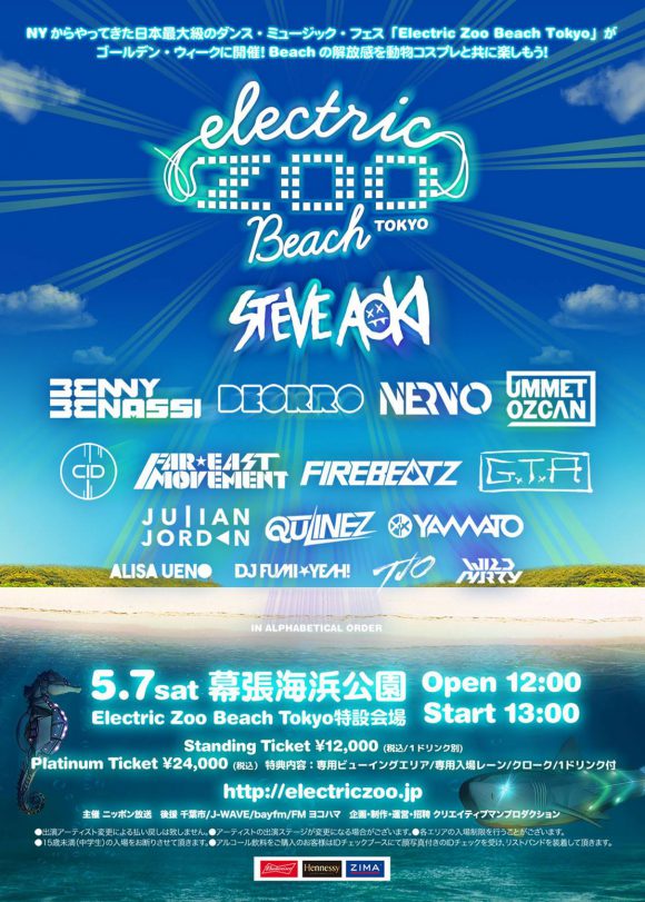 昨年16,000人を動員した日本最大のビーチ・フェス Electric Zoo Beach Tokyoが2016年5月7日(土)に幕張海浜公園で開催されます! [adsense]タイムテーブルエリアマップラインナップ昨年最高潮の盛り上がりを見せたSTEVE AOKIがニュー・アルバムと共にヘッ... -