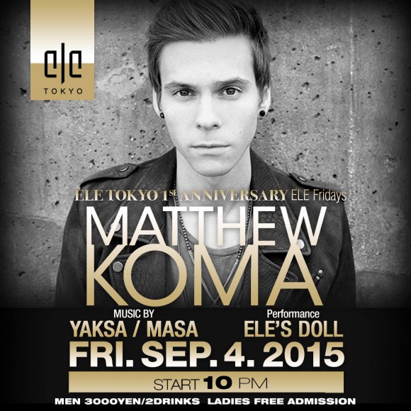 Matthew Komaが9月4日(金)ELE TOKYOに来日!
